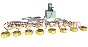 桥梁顶升同步液压千斤顶:桥梁建设工程非常复杂,设备的可靠性直接影响到项目的成败。液压系统为桥梁结构的支撑,升降以及其他应用提供了可靠的保障。在桥梁架设工程中。一台电动泵站可为4台至32台(或更多台)液压千斤顶提供动力。同步顶升实现桥粱支撑垫安装或更换。